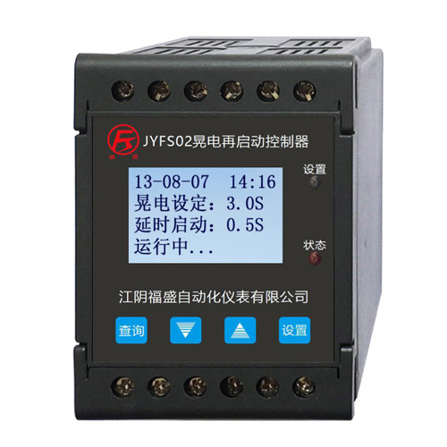 在企業生產過程中,往往都會存在因雷擊、短路故障重合閘或內部電網故障等原因而產生電網電壓瞬時下降,持續時間為10ms到3s左右,這種現象稱為"電壓跌落",又稱"晃電,晃電會引起相關聯鎖設備動作,導致生產線停車,使企業造成巨大的經濟損失, 針對以上情況,我公司經過多年經驗積累成功開發了JYFS02系列晃電再啟動控制器,該產品能在電壓恢復到正常后自動啟動因晃電而停止工作的電機,并可輸出信號來滿足相關工藝的DCS或PLC聯鎖需求,可根據實際情況來設置啟動時間,在晃電發生后能及時、有序地保證生產的連續性運行,特別是在一些無人值守的地方可快速及時地啟動設備,減少因晃電而造成的經濟損失,避免相關事故。產品經過多年的運行和改進,已在石油、化工、冶金、礦山、電力、能源等領域得到廣泛應用,深受用戶的一致好評!